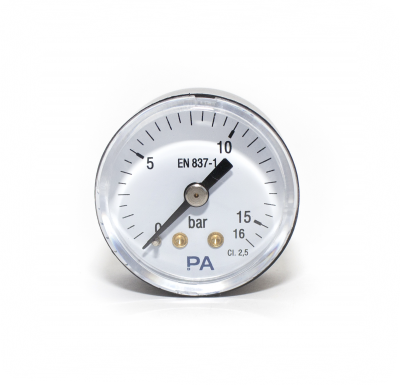 P200, 40mm, black plastic case, 0-16 BAR, KL. 2,5, EN837- 1, G 1/8 CBM connection with spigot, PA logo Price: 3.99€ E-shop: E-shop Quantity * Add to cart