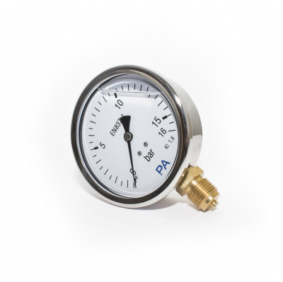 P300, 100mm, glycerine filled pressure gauge, PC lens, G1/2 LM connection with spigot, EN837-1, Kl. 1,6, 0-16 BAR, PA logo Price: 11.34€ E-shop: E-shop Quantity * Add to cart