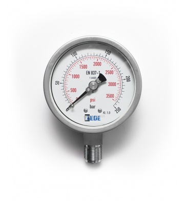 P500, Full stainless steel pressure gauge with Bayonet-Ring, safety glass, PC window, blow out on the back side, 0-250BAR/PSI, LM stainless steel connection, EN837-1, cl. 1,0, with logo Price: 29.48€ E-shop: E-shop Quantity * Add to cart